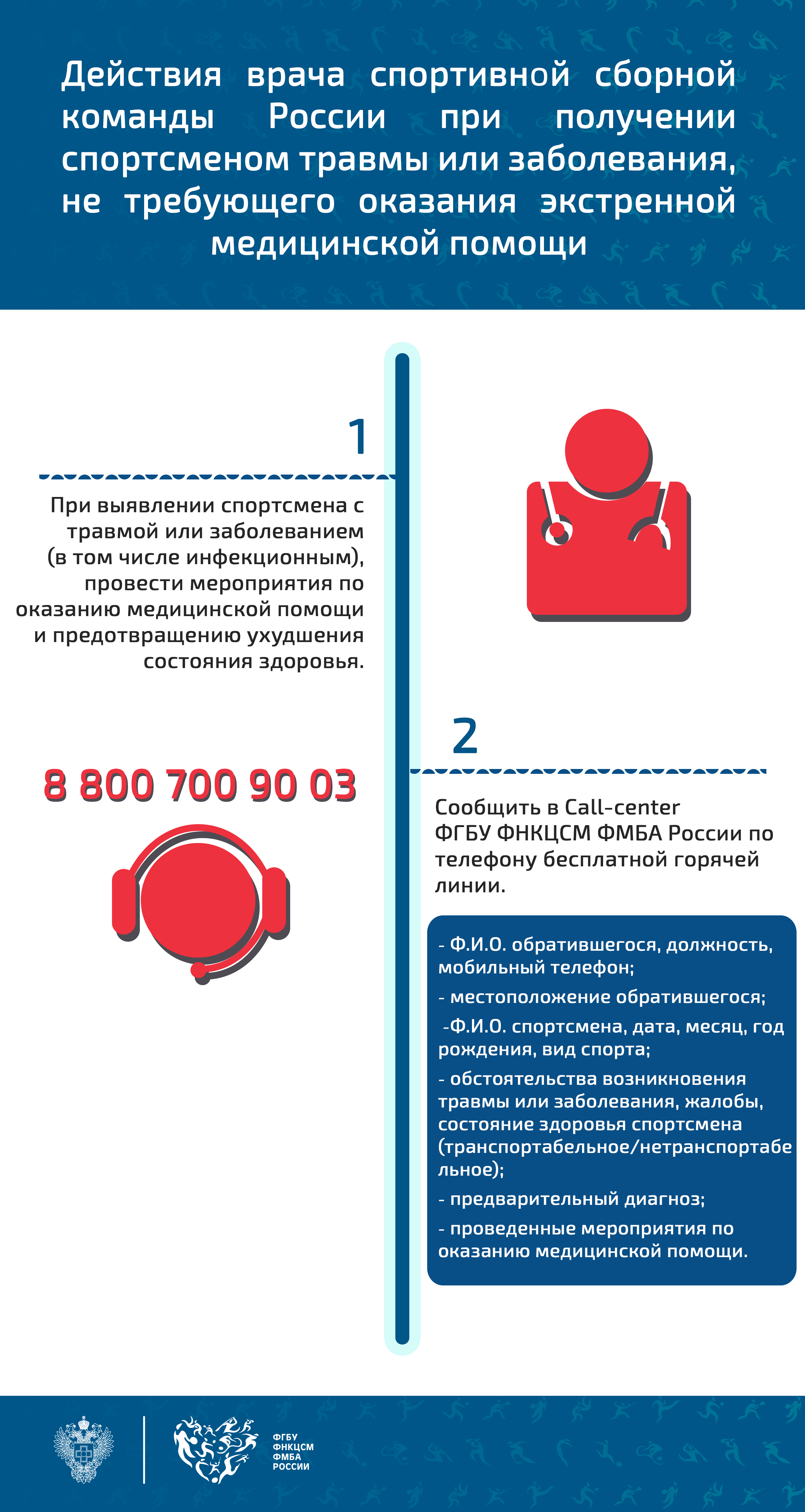 Действия врача спортивной сборной команды России при получении спортсменом травмы или заболевания, не требующего оказания экстренной медицинской помощи